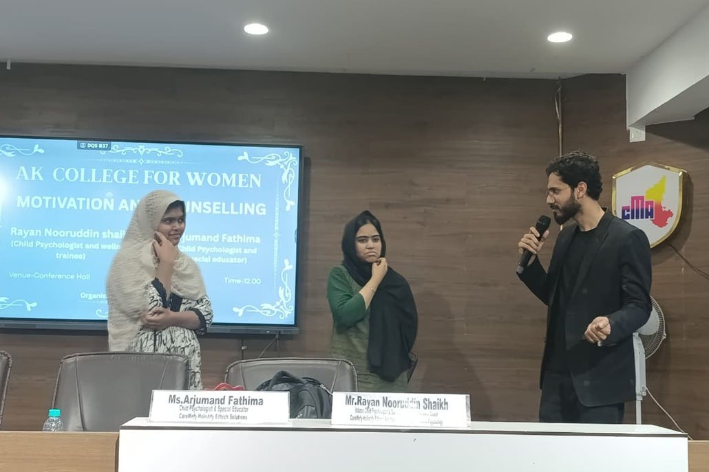 Physiological session for students by Mr. Rayan Nooruddin Shaikh, Islamic/Child Psychologist & Special Educator and Wellness Coach at CareMefy And Ms. Arjumand Fathima, Child Psychologist & Special Educator, CareMefy
